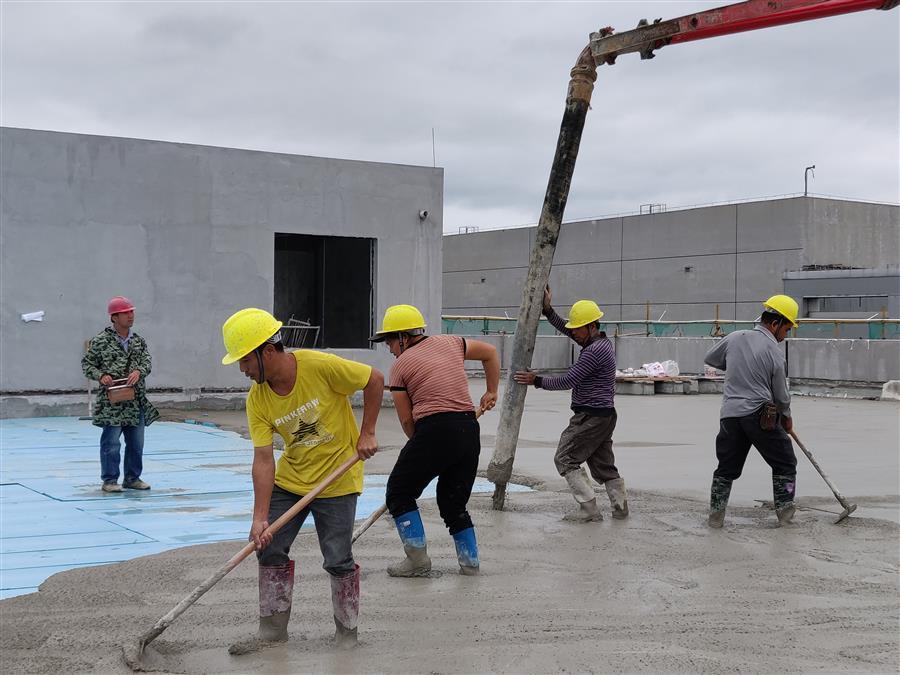 項目部全體成員以只爭朝夕的精神狀態(tài)、沖刺的姿態(tài),堅決完成施工任務(wù)。目前,該項目消防工程完成施工合同80%,外墻氟碳漆完成施工合同80%,樓面施工完成施工合同80%。雙節(jié)期間搶工,完成樓面3200平方米地坪混凝土澆筑,外墻膩子打底3500平方米。