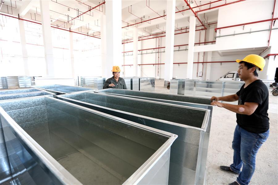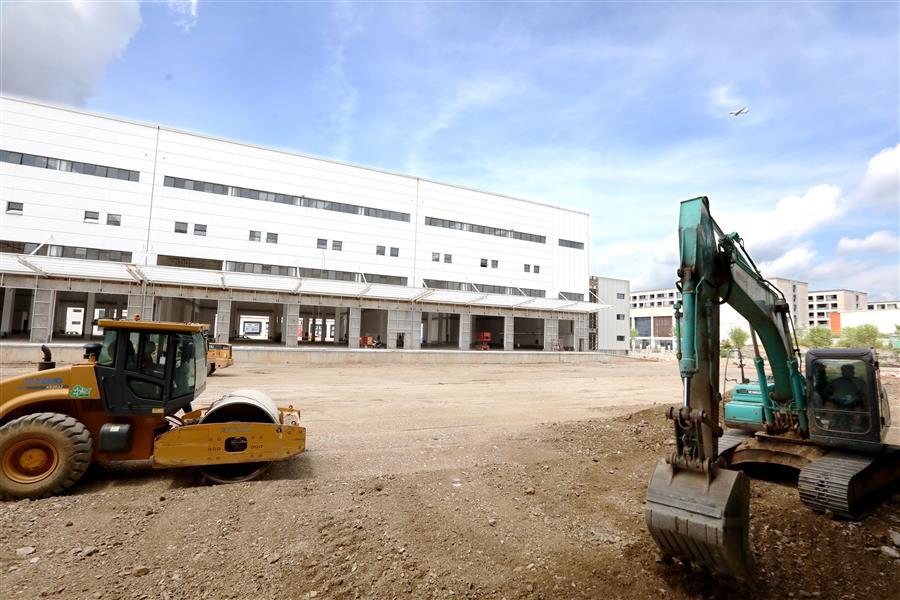 該項(xiàng)目負(fù)責(zé)人莫劍生介紹,倉儲配一體庫主要建設(shè)6棟庫房,目前項(xiàng)目主體基本建成,正緊張有序收尾。為了加快項(xiàng)目進(jìn)度,項(xiàng)目部在做好防暑降溫、安全施工等保障措施的同時,采取多班組、多工種在不同的庫房交叉作業(yè),目前工地上有七八個班組在施工,施工內(nèi)容包括外立面、擋雨棚、通風(fēng)管、地面硬化施工等。