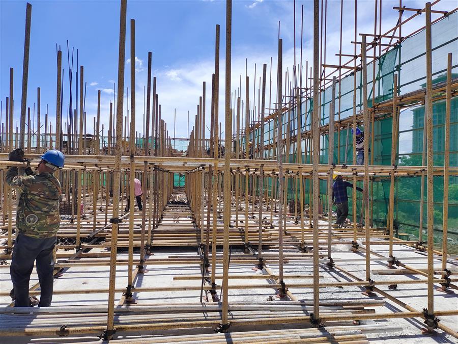 在項(xiàng)目現(xiàn)場(chǎng),每天有50多名工人頂著高溫,相互配合,有條不紊地進(jìn)行鋼筋加工、綁扎鋼筋、混凝土澆筑等工作。為了趕工期,他們時(shí)常加班加點(diǎn)工作到深夜,同時(shí)還認(rèn)真按照工藝標(biāo)準(zhǔn)逐條逐項(xiàng)落實(shí)每一項(xiàng)細(xì)節(jié),嚴(yán)把工藝質(zhì)量。