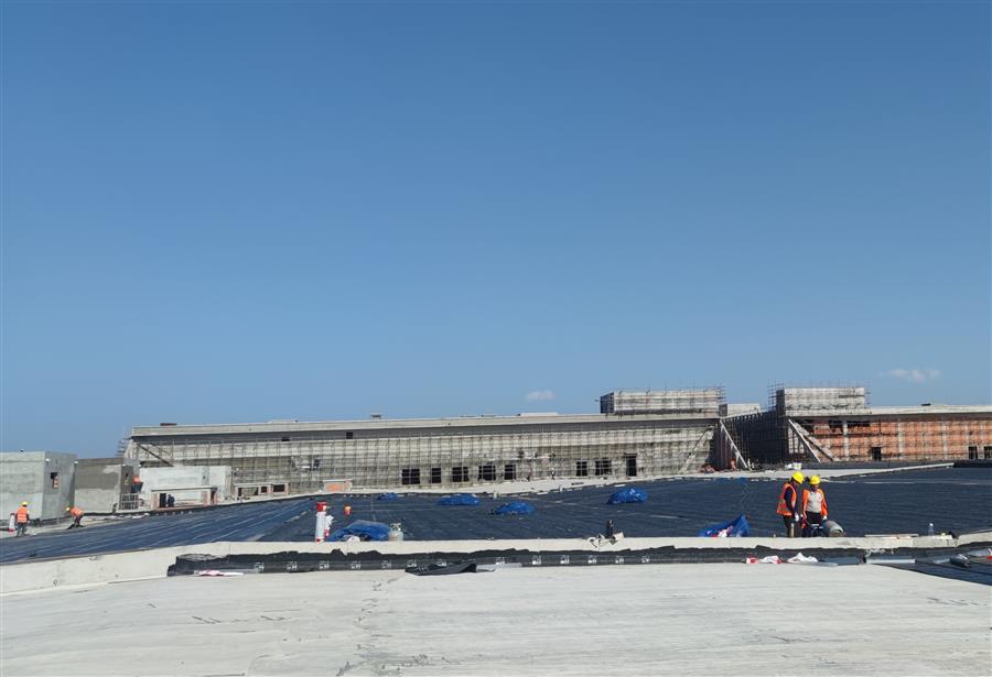 走進50Gwh鋰電池產業(yè)基地(新能源電池標準化廠房)一期項目施工現場,機器轟鳴,工程車來回穿梭,施工人員忙碌作業(yè),水電消防安裝、屋面防水卷材鋪貼、內外墻抹灰、門窗窗框安裝、抗裂砂漿和室外管網路基施工等工作緊張有序地進行中。為應對項目體量大、工期緊的情況,項目部緊扣節(jié)點目標掛圖作戰(zhàn),逐項細化分解工程量,量化任務清單,制定日工作進度表,錨定目標精準發(fā)力,做到畫“圖”定責、按“圖”推進、看“圖”指揮,實現以日保周、以周保月、以月保季,確保了目標任務按序按時推進,曾以不到5個月的時間實現了項目包含的15個單體工程全面封頂。