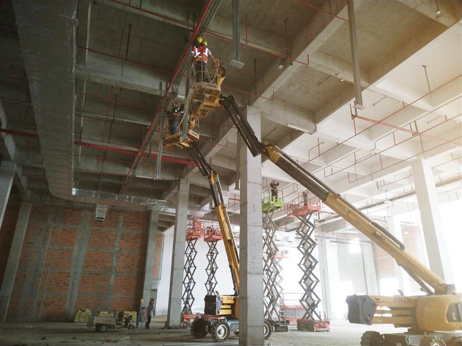 雨天巧干、晴天大干。項(xiàng)目部制定周密、科學(xué)的施工計(jì)劃,提前做好應(yīng)急預(yù)案,每天根據(jù)天氣變化對(duì)工作時(shí)序、應(yīng)對(duì)措施、安全保障等情況進(jìn)行逐一落實(shí),充分利用好天氣窗口期,因時(shí)制宜,在保障安全作業(yè)的前提下,推進(jìn)穿插施工,盡一切可能搶抓進(jìn)度,將攻堅(jiān)再加速。目前,各樓棟水電消防完成90%,外墻膩?zhàn)雍屯鈮ζ崾┕ね瓿蛇^半,窗玻璃安裝完成60%,內(nèi)墻膩?zhàn)油瓿?0%;生產(chǎn)車間真石漆施工完成60%,49-61軸鋁板幕墻安裝完成15%,49-61軸二層金剛砂地坪完成30%,屋面卷材防水完成90%,屋面防水砼保護(hù)層完成60%;宿舍樓外墻裝飾線條完成80%,綜合樓外墻裝飾線條完成70%;室外管網(wǎng)路基施工完成40%。項(xiàng)目累計(jì)完成施工產(chǎn)值4.2億元,完成合同造價(jià)的82%。