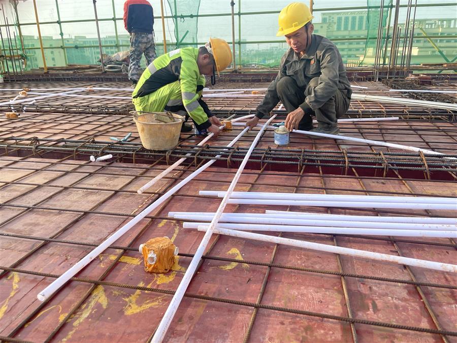 中秋將至,天氣依然炎熱。冶建公司桂海分公司承建的中國移動廣西分公司南寧武鳴區(qū)分公司生產(chǎn)調(diào)度用房工程項目施工現(xiàn)場一派熱火朝天的景象,建設(shè)者們各司其職,切割鋼筋、搬運(yùn)材料、綁扎樓面鋼筋等,全力沖刺工程建設(shè)節(jié)點。