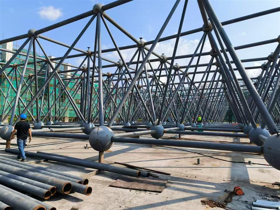 項目正在進行鋼網(wǎng)架電焊、焊口除銹、焊口探傷檢測、鋼球補漆等鋼結(jié)構(gòu)施工。為確保項目順利推進,項目部倒排工期計劃并及時根據(jù)現(xiàn)場情況更新安排,配足人力機械,加班加點,齊心協(xié)力,全員投入推進項目建設(shè)。目前,已完成拼裝任務(wù)的50%。