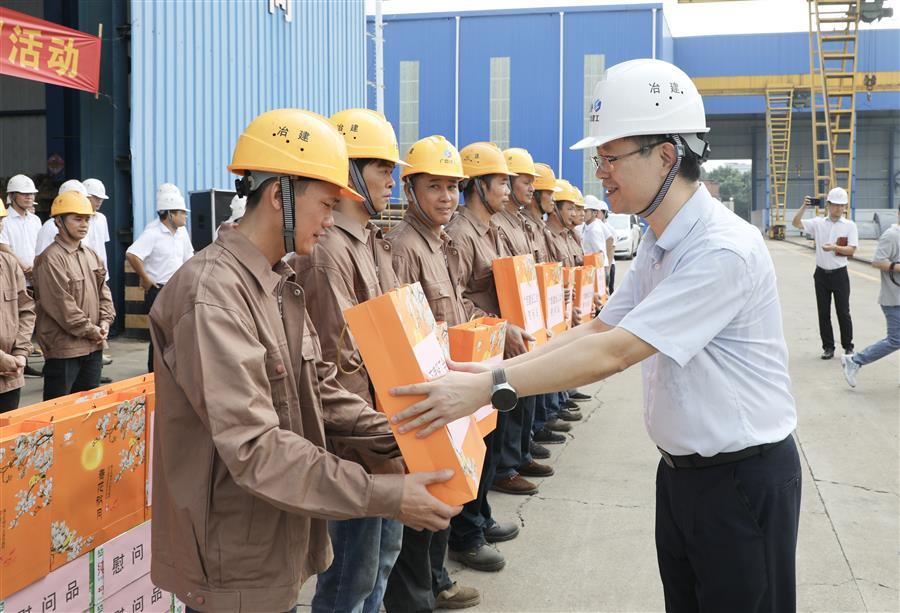 9月24日,自治區(qū)住房城鄉(xiāng)建設(shè)廳黨組成員、副廳長潘國雄帶隊到廣西建工集團(tuán)冶金建設(shè)有限公司,開展“情系職工”中秋慰問活動。集團(tuán)公司黨委副書記、工會主席陳家堅,柳州市住建局黨組書記陳剛,集團(tuán)公司組織人事部副總經(jīng)理向丹,冶建公司總經(jīng)理、黨委副書記蒙勝益,冶建公司黨委副書記、紀(jì)委書記、工會主席賴海標(biāo)參加。廣西建設(shè)工會副主任、二級調(diào)研員鄒麗萍參加并主持慰問活動。