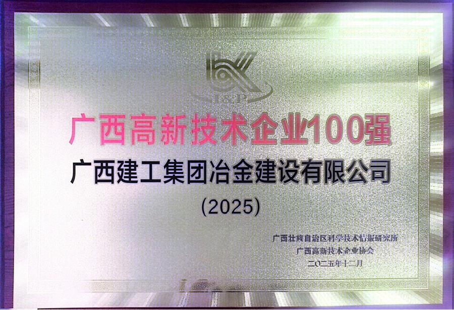 近日,廣西科技情報(bào)研究所聯(lián)合廣西高新技術(shù)企業(yè)協(xié)會(huì)正式發(fā)布2025年度廣西高新技術(shù)企業(yè)百?gòu)?qiáng)系列榜單。冶建公司憑借突出的創(chuàng)新實(shí)力、穩(wěn)健的發(fā)展質(zhì)效成功躋身榜單,充分彰顯了公司技術(shù)創(chuàng)新能力、核心競(jìng)爭(zhēng)力與行業(yè)影響力。