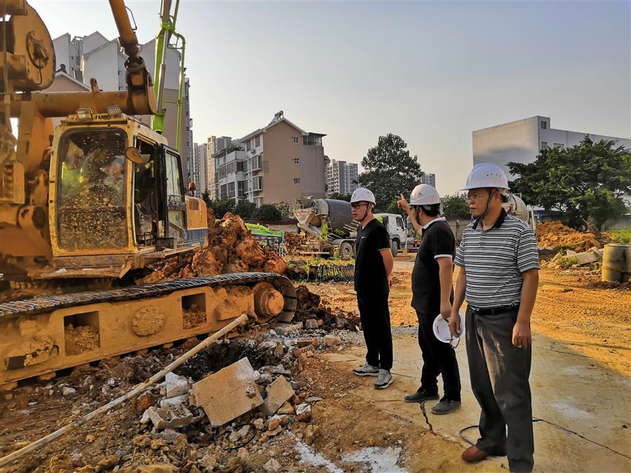 10月5日上午,桂東分公司經(jīng)理謝勇、黨支部書記黃桂軍來到柳州市防汛抗旱物資儲備倉庫工程項目現(xiàn)場慰問看望節(jié)假日仍堅守崗位的一線員工。該項目施工現(xiàn)場地質(zhì)條件復(fù)雜,容易塌孔且地下層部分為巖石層結(jié)構(gòu),施工難度大。為確保在甲方要求的工期內(nèi)完成施工,工人們節(jié)假日仍加班加點搶工期。他們腳踏黃土,頭頂著炎炎烈日,揮灑著蒸騰的汗水,以實際行動為集團公司早日躋身世界500強貢獻力量!
