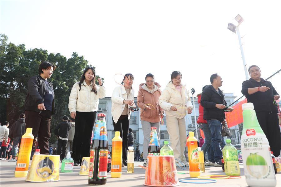 活動(dòng)現(xiàn)場處處歡聲笑語、熱鬧非凡,一派歡樂祥和的景象。在集體項(xiàng)目團(tuán)隊(duì)滾鐵環(huán)接力賽、單腿跑火車接力賽中,參與比賽的員工配合默契、銜接緊密、奮力爭先,場面激烈,觀眾的掌聲、笑聲、喝彩聲此起彼伏。游園活動(dòng)還設(shè)置擲壺、飛鏢、滾球入桶、定點(diǎn)投籃、盲人擊鼓、套活雞活鴨等8項(xiàng)個(gè)人項(xiàng)目,大家有序排隊(duì)積極參與,樂在其中,收獲滿滿,為即將到來的蛇年新春增添了滿滿的喜氣。