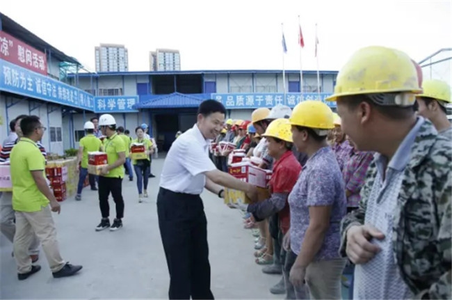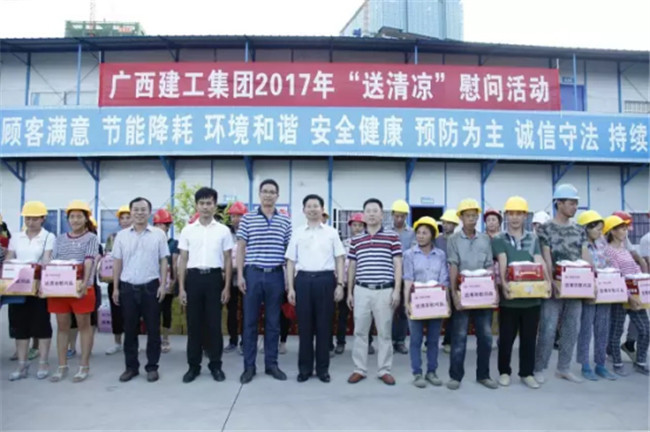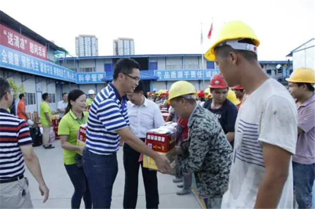 柳州市高新區(qū)科技園專(zhuān)家公寓樓工程由我司桂華分公司承建。8月7日下午,廣西建工集團(tuán)副總經(jīng)理侯立林冒著高溫酷暑,專(zhuān)程從南寧前來(lái)項(xiàng)目建設(shè)現(xiàn)場(chǎng)給一線職工和農(nóng)民工“送清涼”,公司領(lǐng)導(dǎo)歐志永、賴海標(biāo)、廖立波參加活動(dòng)。130多份價(jià)值9000多元的慰問(wèn)品,在十多分鐘的時(shí)間里,全部發(fā)放完畢。